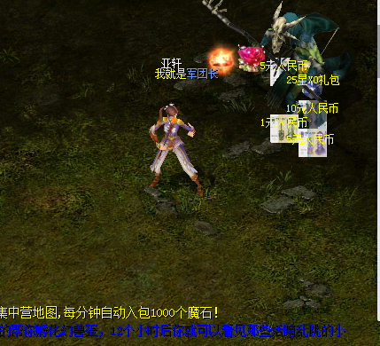 游戏内赞助50个充值点 | 自身打怪爆率曾加到4.0倍.送:风-火-地-水全属性+50装备一套(无需下线全部NPC自行完成) |