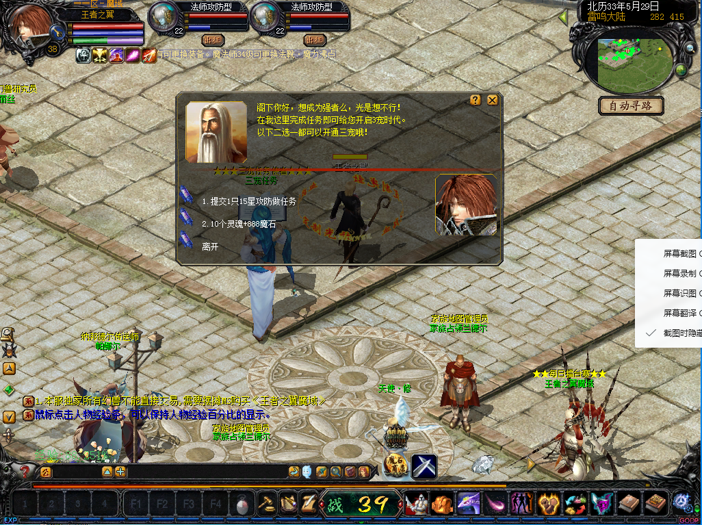 本服开三方式1.10灵魂+888MS,2.提交1只15*攻防幻兽,完成任务幻兽消失!